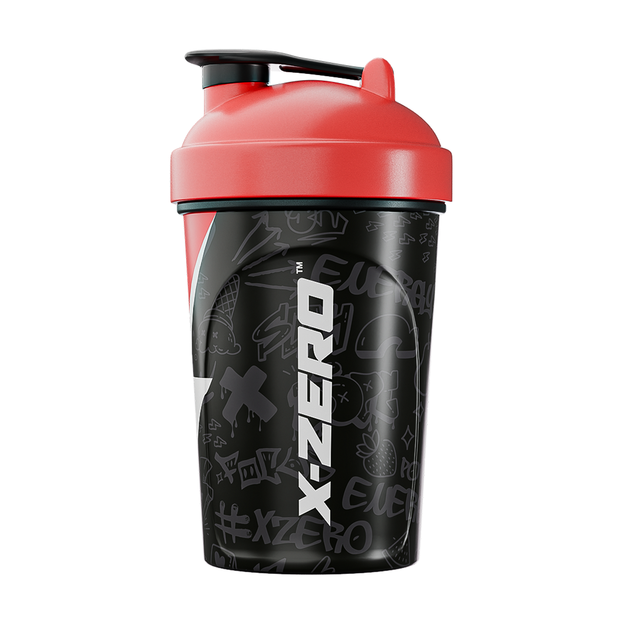 Elevate your hydration with an X-Zero Black & Red Shaker! This durable, BPA and  DEHP-free shaker holds a full serving of 500ml, perfect for mixing your favorite X-Zero on the go.
