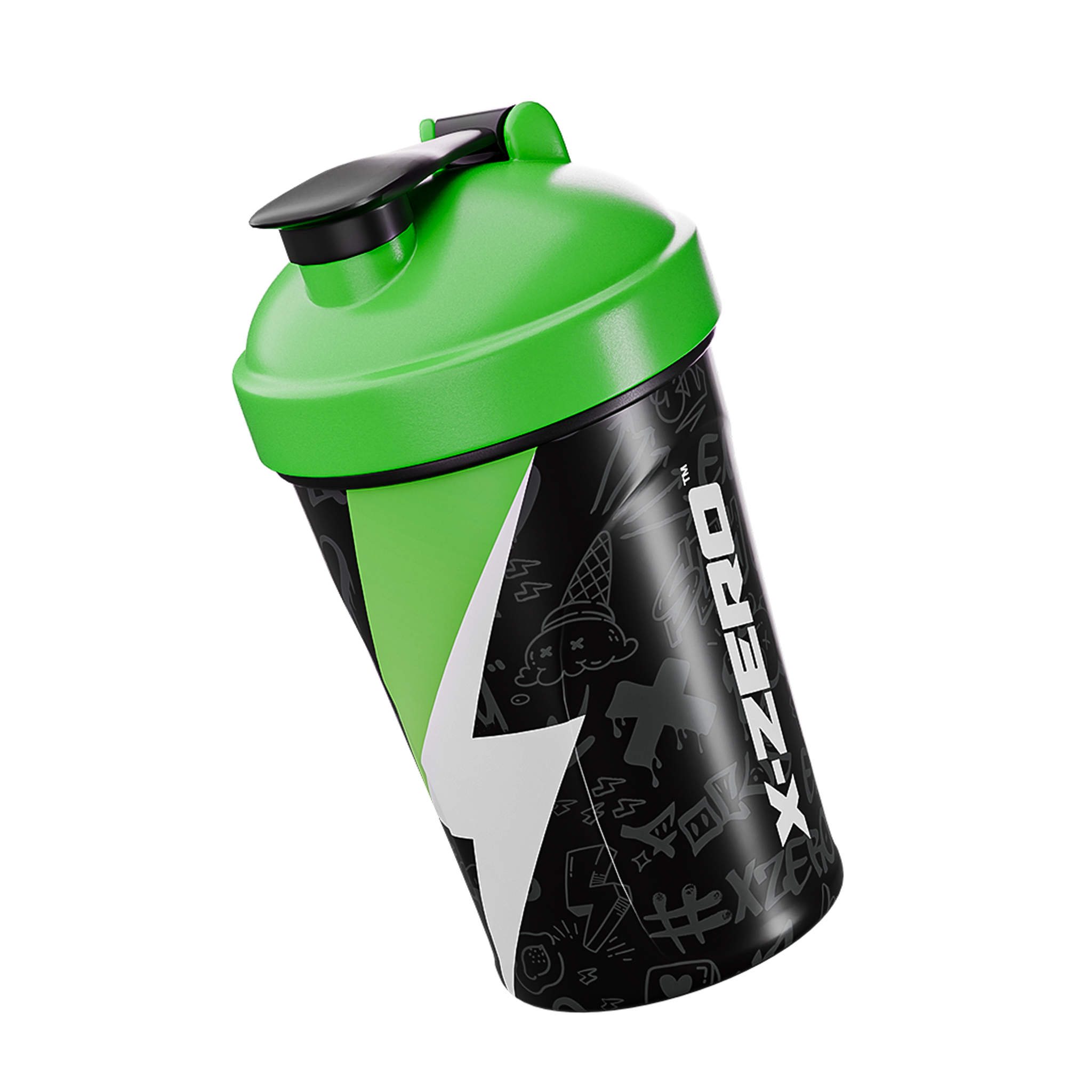 Elevate your hydration with an X-Zero Black & Green Shaker! This durable, BPA and  DEHP-free shaker holds a full serving of 500ml, perfect for mixing your favorite X-Zero on the go.