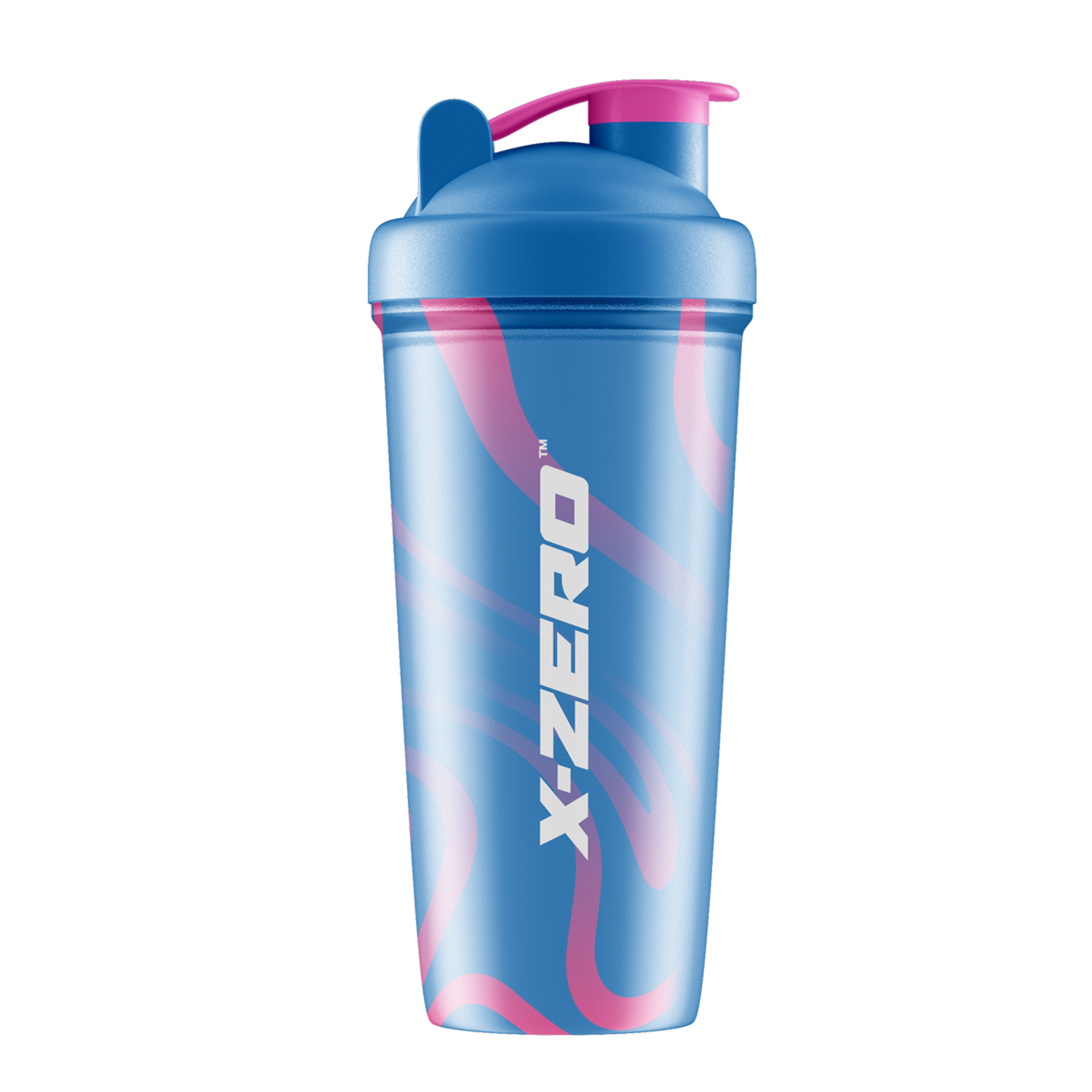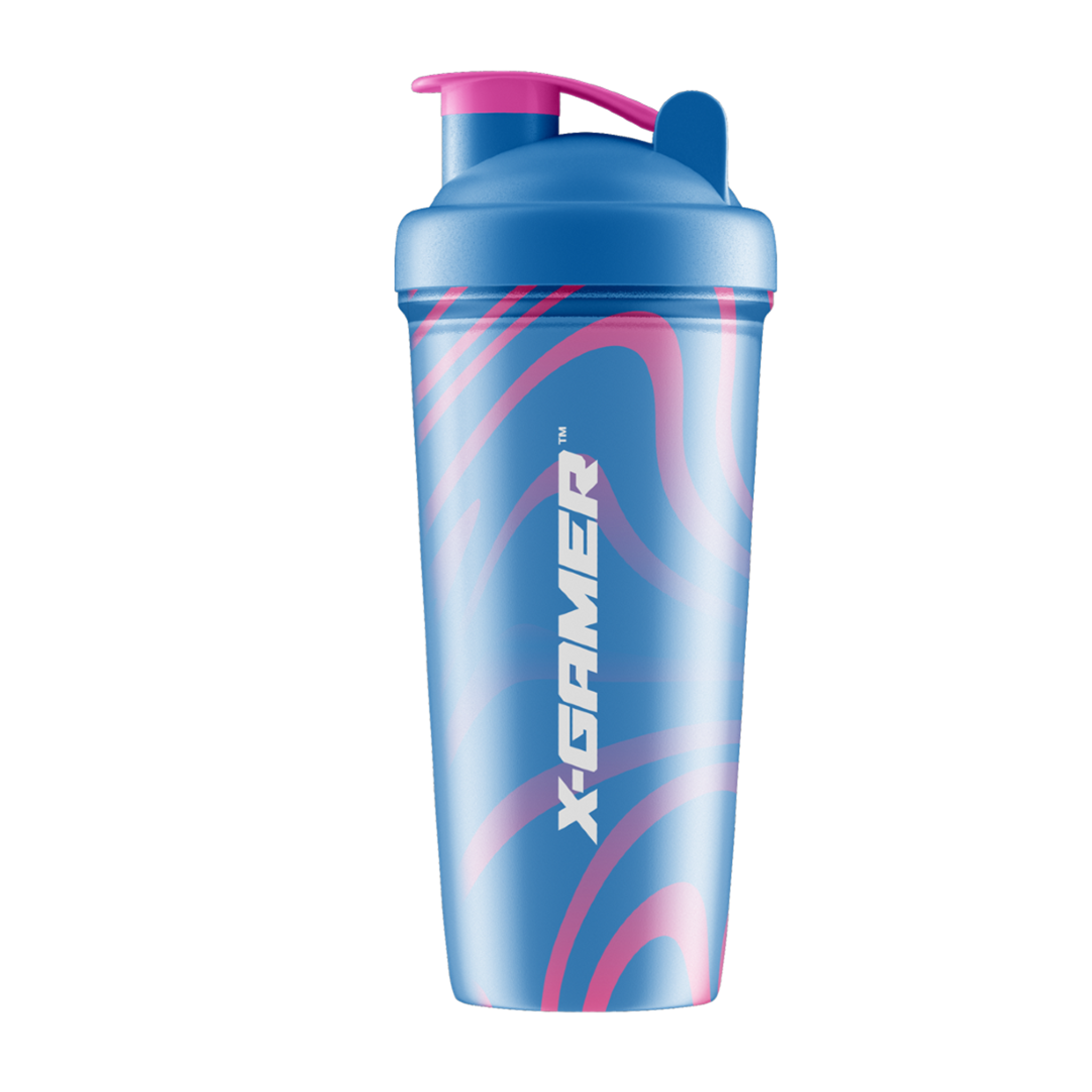 X-Gamer Swirly Blue & Pink Shaker! This durable, BPA and  DEHP-free shaker holds 700ml, perfect for mixing your favorite X-Zero on the go.