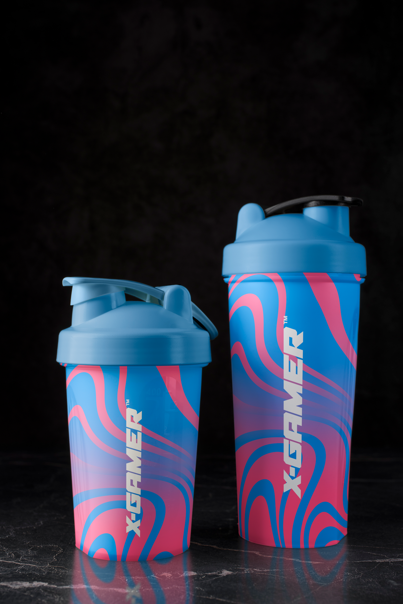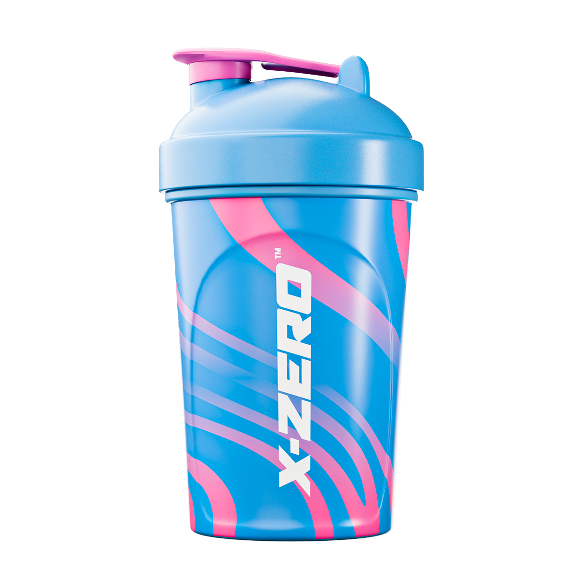 X-Gamer Swirly Blue & Pink Shaker! This durable, BPA and  DEHP-free shaker holds a full serving of 500ml, perfect for mixing your favorite X-Zero on the go.